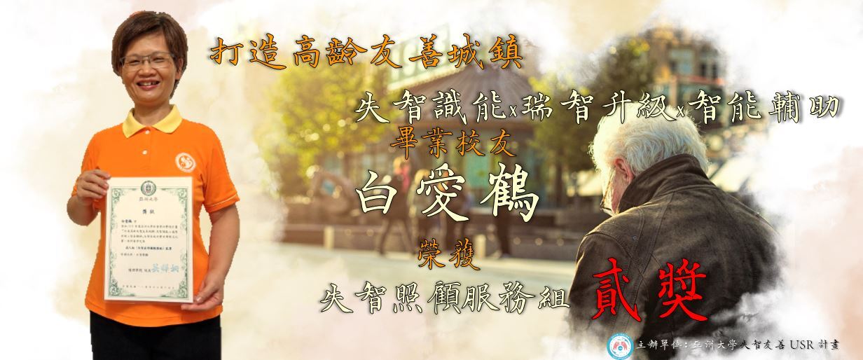 畢業校友 白愛鶴 榮獲亞洲大學失智友善USR計畫打造高齡友善城鎮失智照顧服務組貳獎
